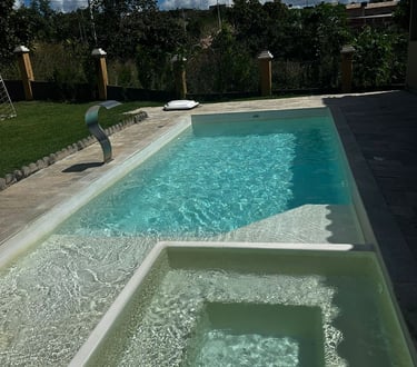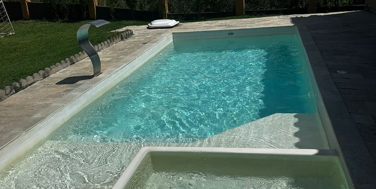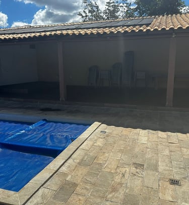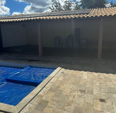 Desfrute de uma piscina semi aquecida com hidromassagem.